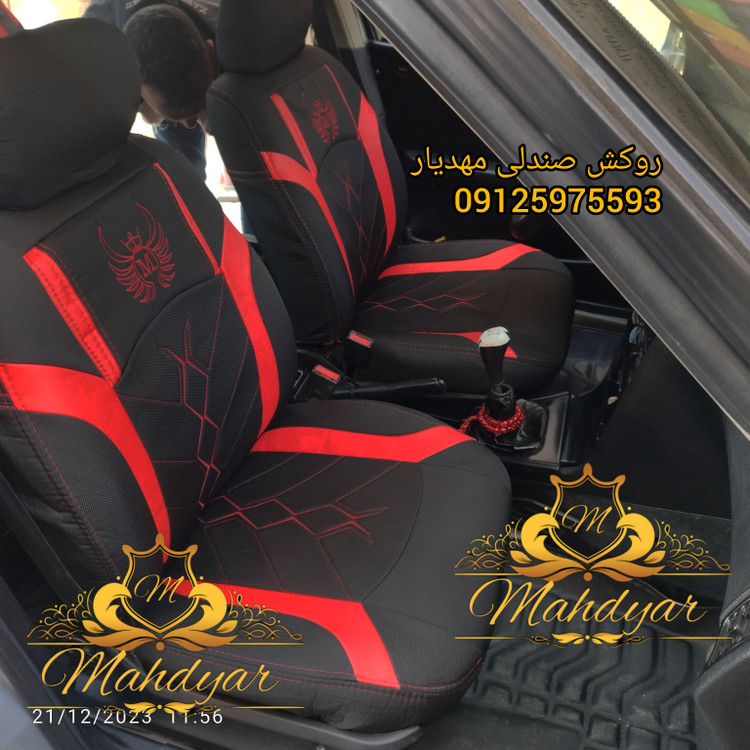روکش صندلی131.132 جودون برزنت سنگین رنگ مشکی بغل چرم قرمز(مدل90به بالا)